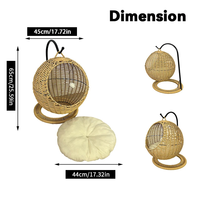 YXT Rattan Cat Bed, Hand-Woven ,Comfy Cat Nest Basket, Hanging Basket Swinging Pet House